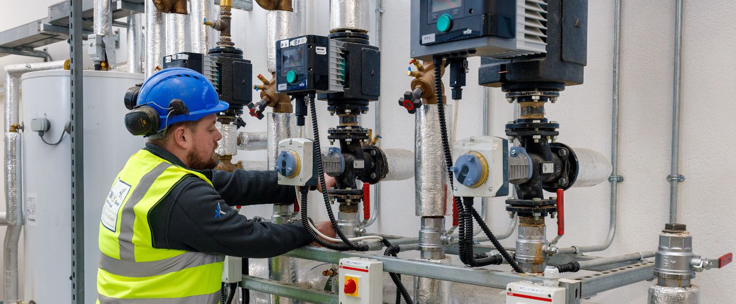- Boilerhouse install including gas boilers, pipework, and pumps